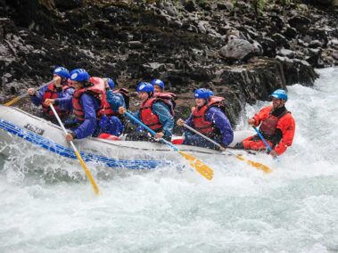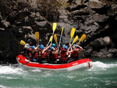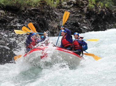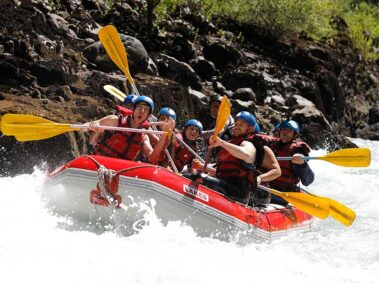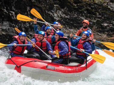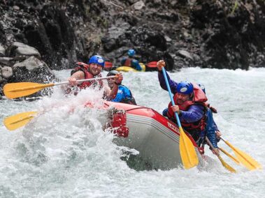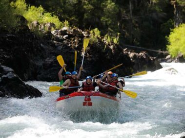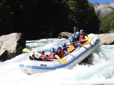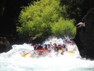 Nos equipamos para el rafting con un traje de neopreno, casco, chaqueta seca y chaleco salvavidas. Una charla técnica te introducirá a lo que será una aventura única en un medio natural realmente maravilloso. Te esperan dos horas de navegación intensas y emocionantes en aguas blancas, con rápidos y remansos a donde seguramente querrás volver.