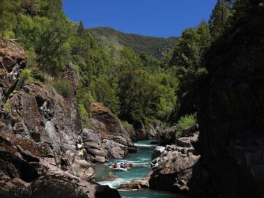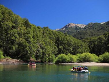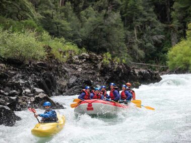 Al llegar al límite con la república de Chile nos cambiamos y regresaremos a la base donde nos esperan con un exquisito almuerzo. Después del tiempo para el almuerzo les recomendamos concluir el día con un mini trekking para disfrutar del intenso verde de la selva valdiviana, o simplemente disfrutar de la playa de arena, rodeados de una exuberante vegetación en la ribera del río.